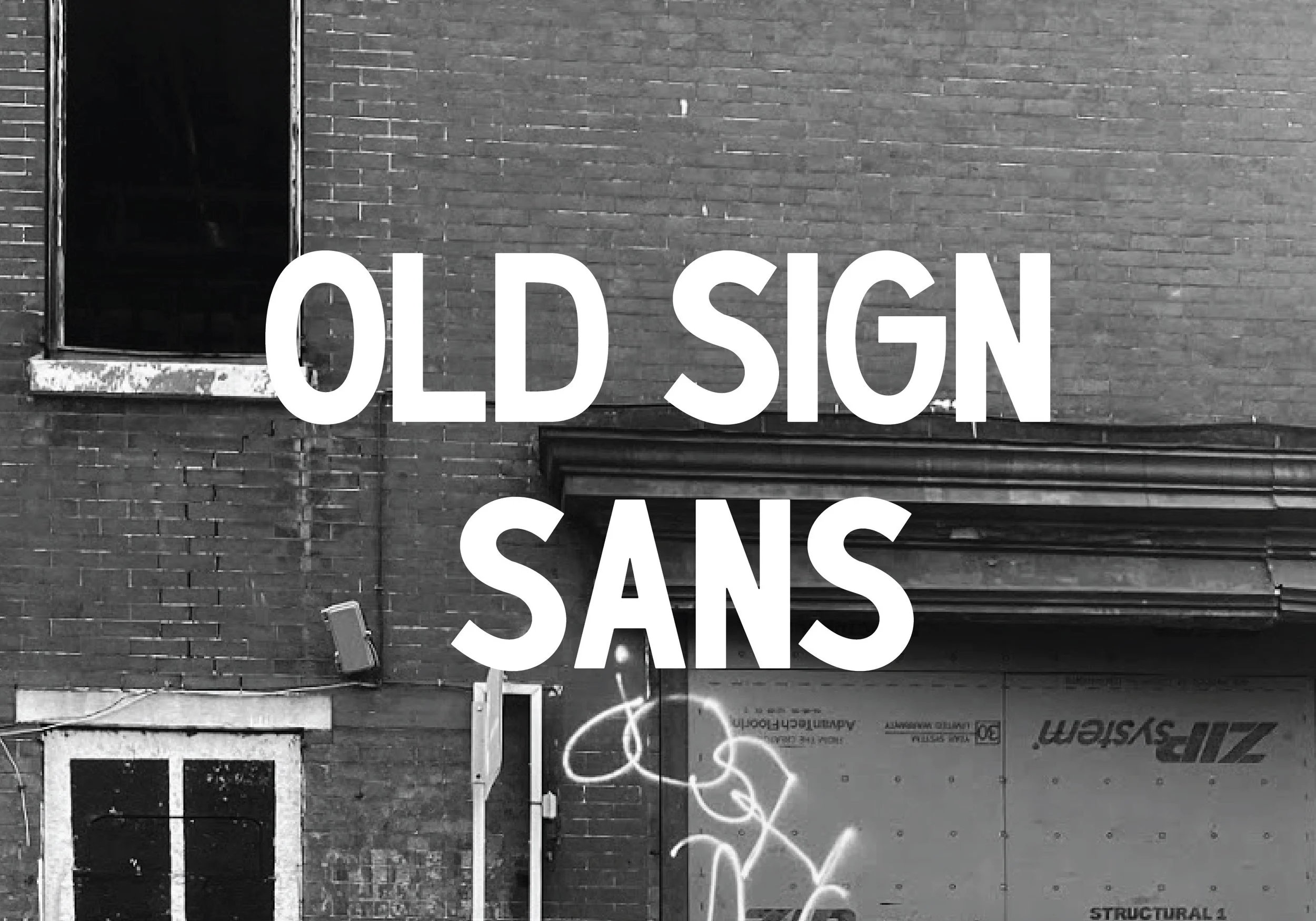 Old Sign Sans is a bold, industrial-inspired display typeface modeled after vintage signage. Its sturdy forms and quirkiness give it a rugged, fun and authentic character. Ideal for vintage T-shirts, posters, signage, logos, packaging, and any design that needs a strong, old-school industrial style.